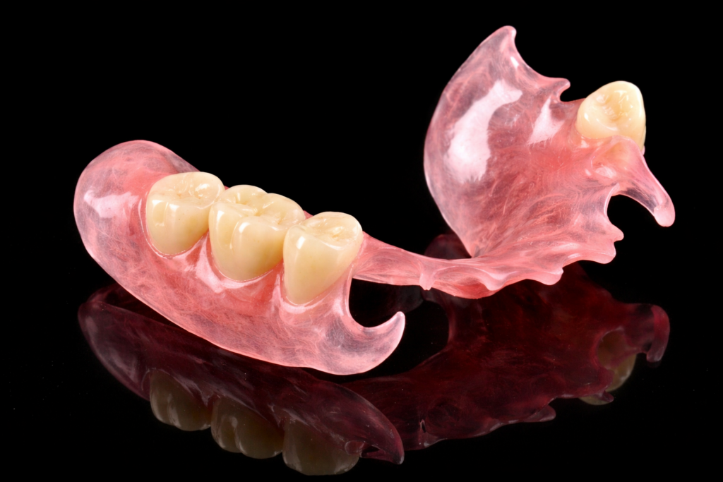 Flexible dentures are removable partial dentures made from thermoplastic materials instead of rigid acrylic. They are lightweight, flexible, metal-free, and highly aesthetic, allowing the denture to blend naturally with the gums while providing better comfort and a secure fit.