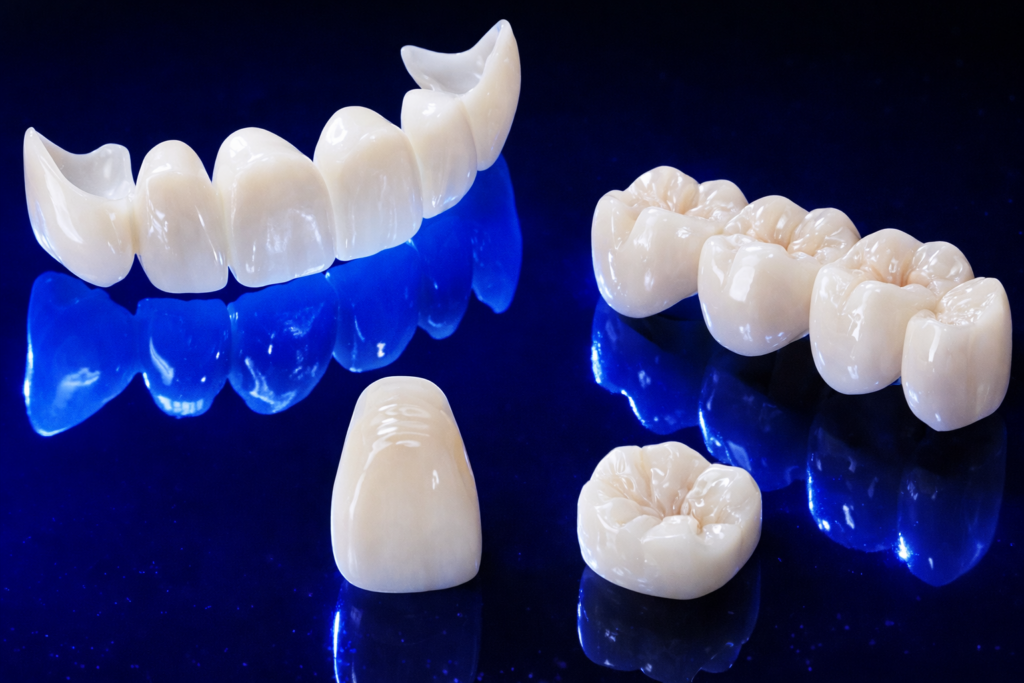Zirconia crowns and bridges are high-strength ceramic dental restorations made from zirconium dioxide. They are known for their excellent durability, natural tooth-like appearance, and metal-free composition, making them ideal for both front and back teeth. Zirconia restorations provide strong support, precise fit, and long-lasting aesthetics, helping restore chewing function and a natural smile.